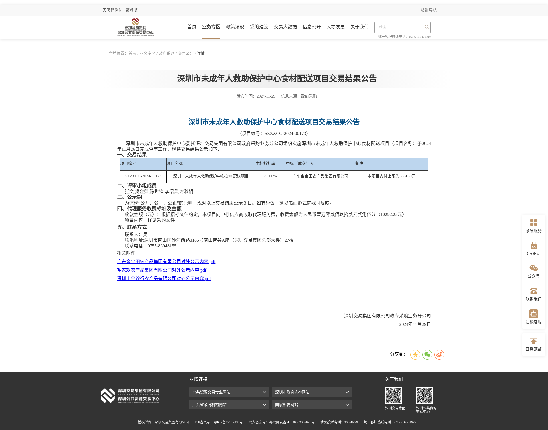 附件:深圳市未成年人救助保护中心食材配送项目交易结果公告